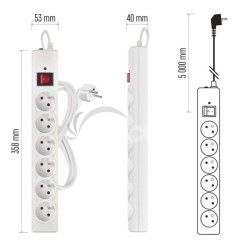 Prepäťová ochrana – 6 zásuviek, 5 m, biela P54017
