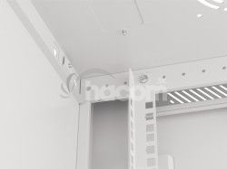Vďaka dvom vetracím otvorom v stropnom paneli zaisťujeme vynikajúce prúdenie vzduchu a účinné chladenie. Užívateľom ponúkame ešte lepšiu kontrolu nad teplotou vo vnútri skrine, čo je kľúčové pre udržanie optimálnych provozních podmienok zariadenia.