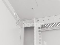 Pomocou dvoch vetracích otvorov v stropnom paneli zaisťujeme vynikajúce prúdenie vzduchu a účinné chladenie. Užívateľom ponúkame ešte lepšiu kontrolu nad teplotou vo vnútri skrine, ktorá je kľúčová pre udržanie optimálnych provozních podmienok zariadenia.