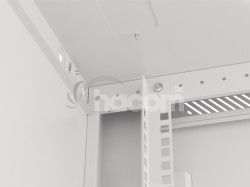 Vďaka dvom vetracím otvorom v stropnom paneli zaisťujeme vynikajúce prúdenie vzduchu a účinné chladenie. Užívateľom ponúkame ešte lepšiu kontrolu nad teplotou vo vnútri skrine, čo je kľúčové pre udržanie optimálnych provozních podmienok zariadenia.