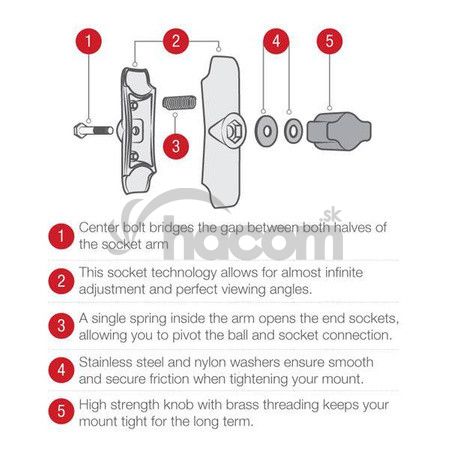 Univerzálny dvojitý guľový držiak RAM® s dvoma okrouhlými doskami - veľkosť B strednáRAM-B-101U sa skladá zo stredne dlhého 1" ramena s dvojitou objímkou veľkosti B a dvoch okrouhlých guľových základov s priemerom 2,5", ktoré obsahujú univerzálny vzor otvorov AMPS. Systém guličky a objímky poskytuje tlumenie nárazov a vibrácií a umožňuje takmer nekonečnú nastaviteľnosť na dosiahnutie ideálneho pozorovacieho a provozního uhla vášho zariadenia.