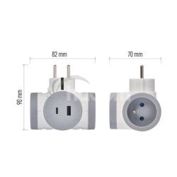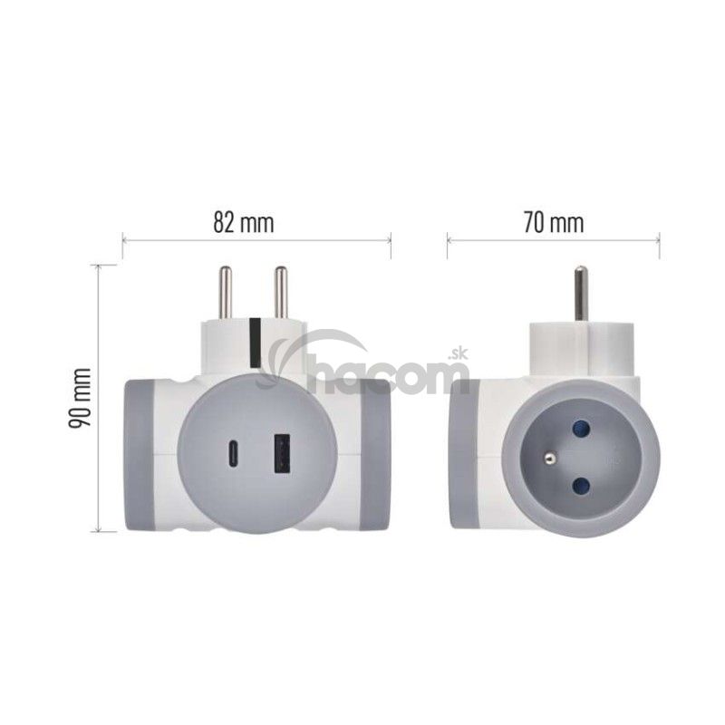 - Rozbočovacia zásuvka 2×, 1×USB-A+1×USB-C, bielo-sivá P0076PD
