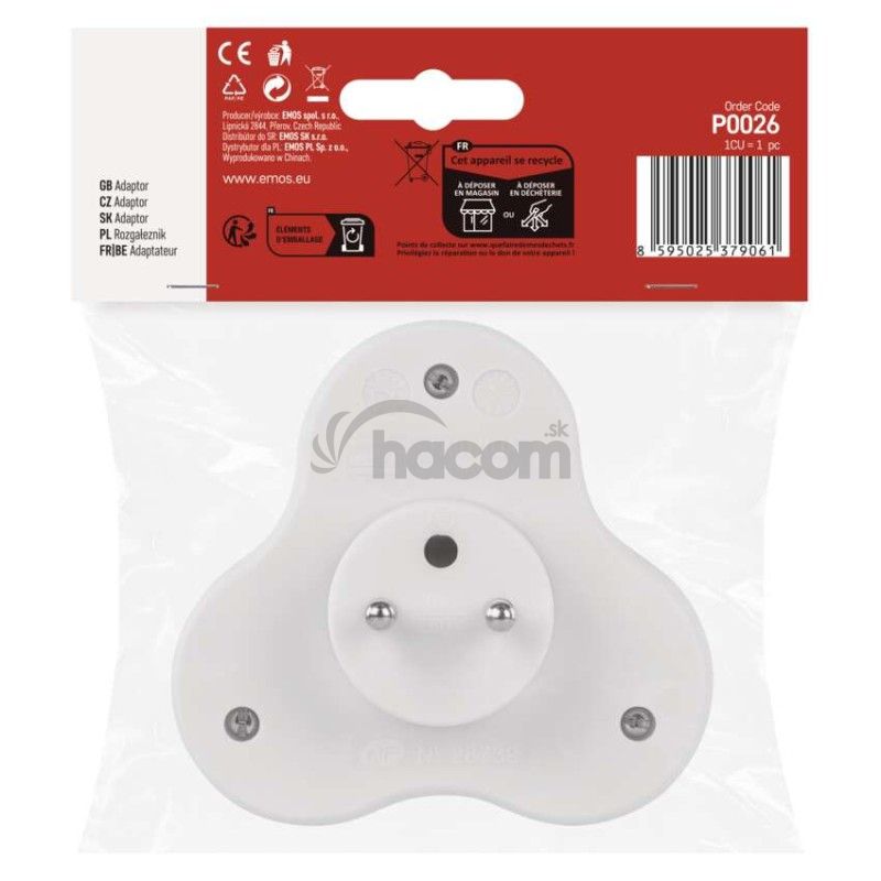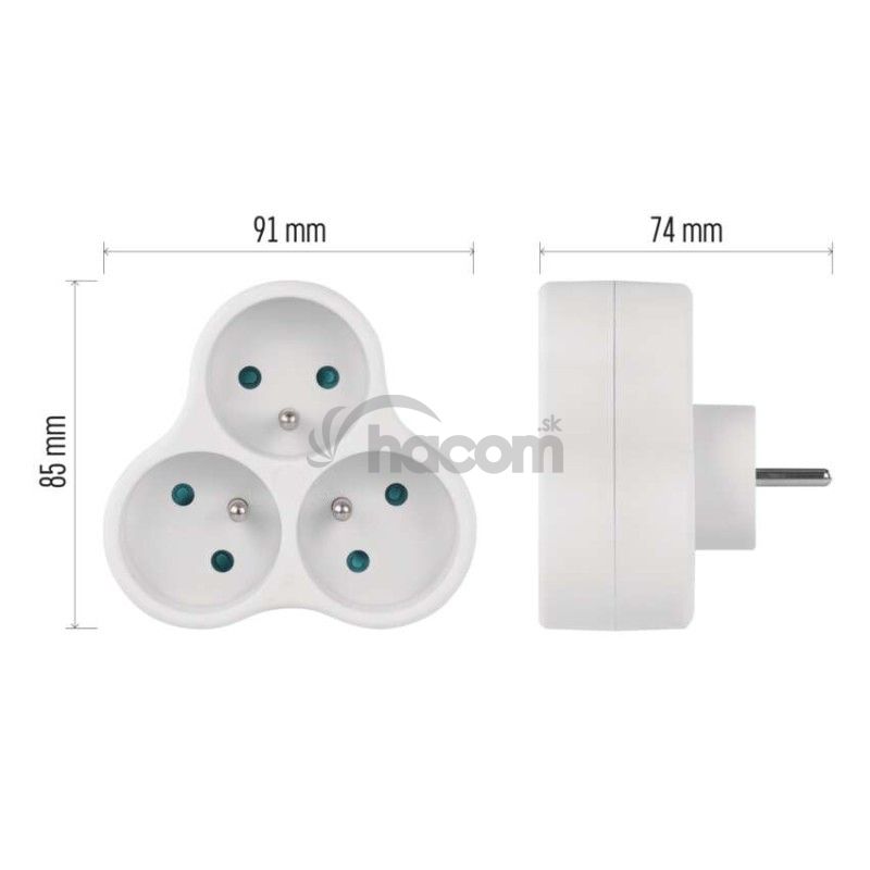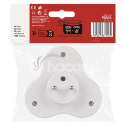 - Rozbočovacia zásuvka 3× guľatá, biela P0026