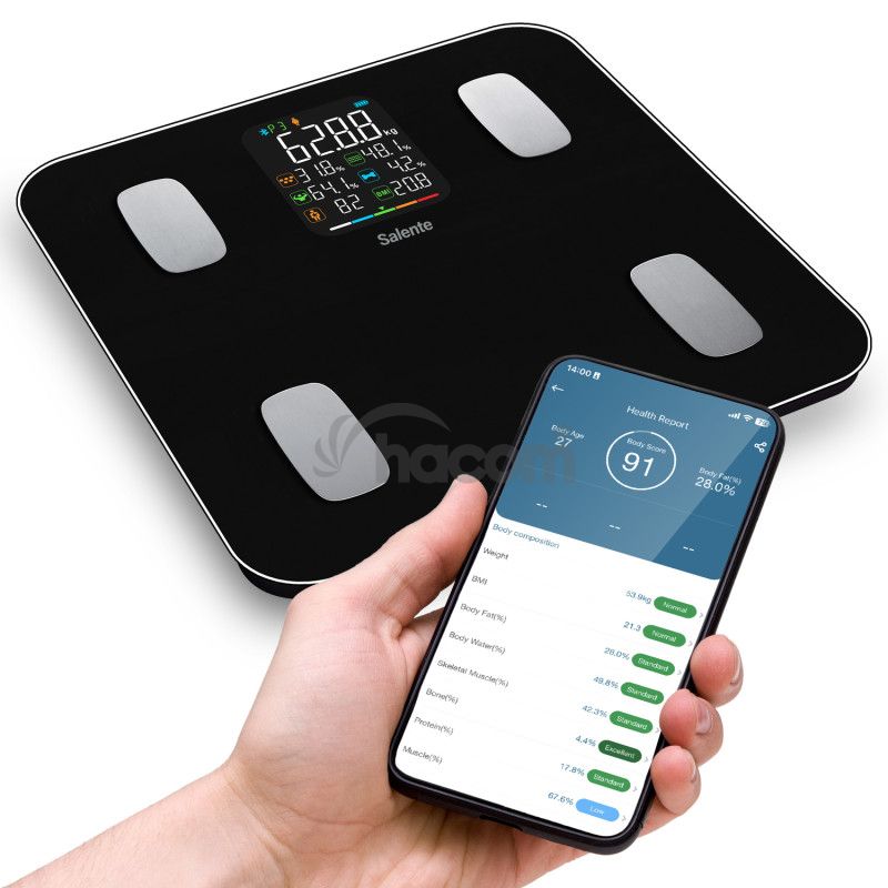 - Salente MaxFit, múdra osobná diagnostická fitness váha, Bluetooth, čierna MAXFIT-BK
