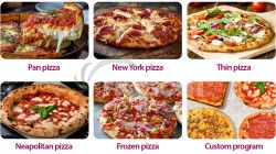 • Neapolitan pizza: tradičný neapolský štýl s výrazným, vzdušným okrajom a jemným stredom. Tento program využíva extrémne vysokú teplotu a krátku dobu pečenia, aby testo zostalo ľahké a získalo typické ľahko spálené puchýriky po okrajoch