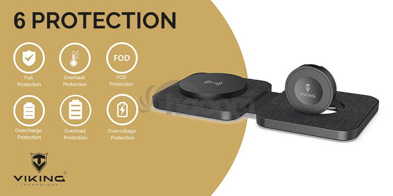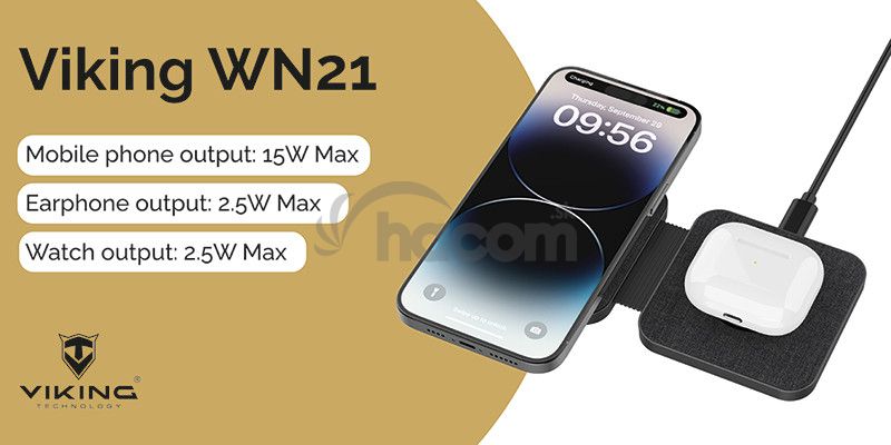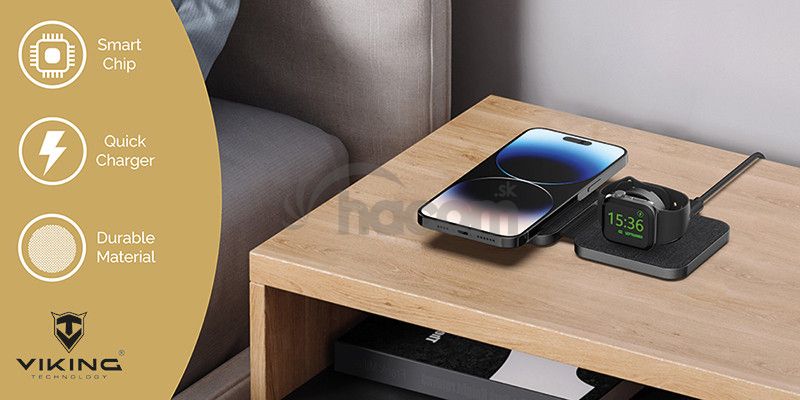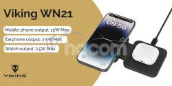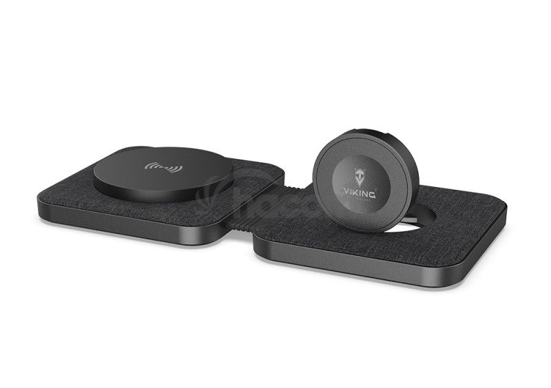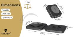 Skladacia wireless nabíjačka • 1 x USB-C vstup • výkon výstupu pre mobily 15W Max. • výkon výstupu pre hodinky a slúchadlá 2.5W Max. • nabíjanie až 2 zariadení súčasne • USB-C kábel 1 mSkladacia wireless nabíjačka Viking WN21