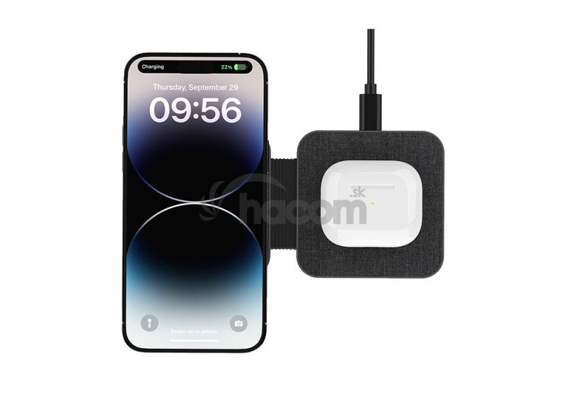 Nabíjačka ponúka dva bezdrôtové výstupy, ktoré umožňujú nabíjanie dvoch zariadení súčasne, čo je ideálne pre mobilné telefóny, hodinky a slúchadlá. Výstupný výkon pre mobilné zariadenia dosahuje až 15W, zatiaľ čo pre hodinky a slúchadlá poskytuje výkon až 2,5W. Súčasťou balenia je aj USB-C kábel s dĺžkou 1 m, ktorý zaisťuje kompletné vybavenie pre rýchle a efektívne nabíjanie.