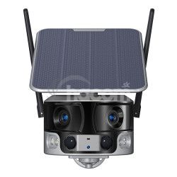 solárne napájanie · rozlíšenie 4K (4096*2160) · ultraširoký záber 180° · zložený obraz dvoch objektívov · ochrana IP66 · PIR čidlo · detekcia ľudského pohybu · nočné infračervené a farebné videnie na vzdialenosť 20 - 40 m · WIFI pripojenie · ovládanie v chytrej aplikácii · obojsmerný interkom · možnosť ukladania na cloud úložiska alebo na TF kartuSolárna kamera Viking PRIME-WiFi