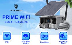 Solárna kamera Viking PRIME-WiFi , ktorá disponuje panoramatickými šošovkami s 180° uhlom pohľadu, IP66 ochranou (platí iba v prípade, že sú všetky vstupné aj výstupné konektory zakryté napr. silikónovým ochranným krytom), PIR čidlom, detekciou ľudského pohybu a nočným videním. Ku kamere je taktiež možné pripojiť výkonný solárny panel, vďaka ktorému je kamera nezávislá na elektrickej sieti.