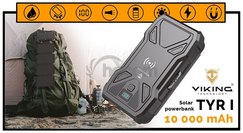 Viking TYR I má kompaktné rozmery a váži iba 570 g. Súčasťou príslušenstva je aj praktické pútko na zavesenie . Ľahko tak powerbanku ponesiete na batohu a budete mať stále dostatok slnečnej energie. Vďaka certifikácii IP54 je táto powerbanka odolná proti prachu a striekajúcej vode, takže ju môžete používať aj v náročných podmienkach bez toho, aby ste sa báli o jej bezpečnosť. Navyše, vďaka vystuženému krytu a gumovým krytom, bude powerbanka chránená aj pri pádoch.