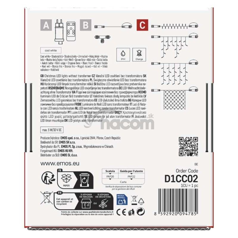 - Standard LED spoj. reťaz blikajúca – cencúle, 2,5 m, vonkajšia, studená biela D1CC02