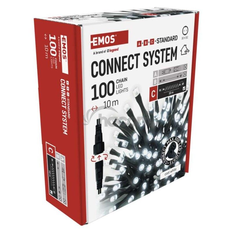 - Standard LED spojovacia vianočná reťaz, 10 m, vonkaj. aj vnútor., studená biela D1AC03