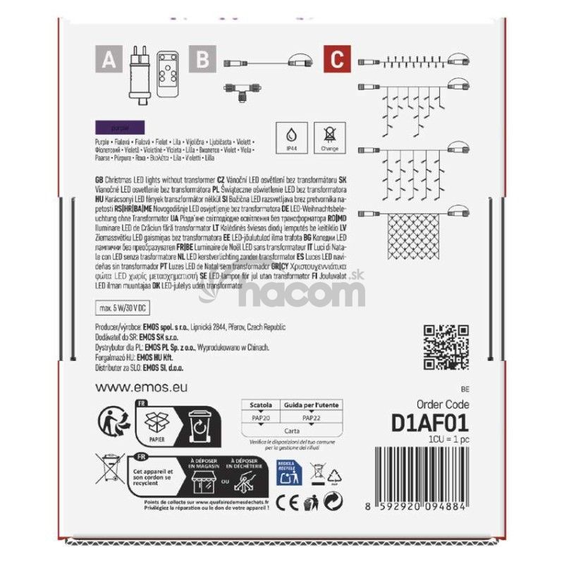 - Standard LED spojovacia vianočná reťaz, 10 m, vonkajšia aj vnútorná, fialová D1AF01