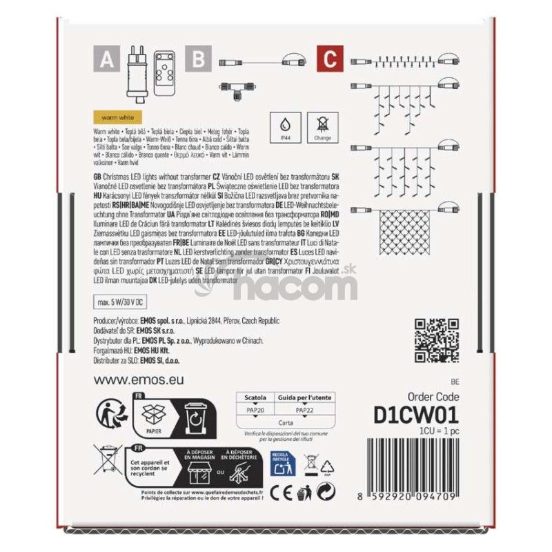 - Standard LED spojovacia vianočná reťaz – cencúle, 2,5 m, vonkajšia, teplá biela D1CW01