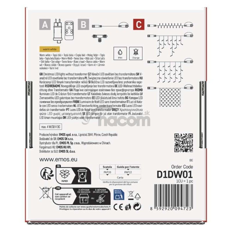 - Standard LED spojovacia vianočná reťaz – sieť, 1,5x2 m, vonkajšia, teplá biela D1DW01