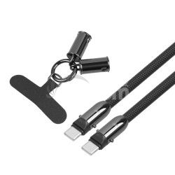 TB 2v1 USB C kábel, 1m - čiernyUSB-C na USB-C 2v1 kábel a šnúrka na krk