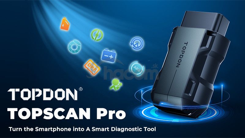 TopScan Pro - je vreckové diagnostické zariadenie, ktoré premení váš telefón na skenovací nástroj a drží krok so svojimi užívateľmi, ktorí prekračujú rámec základného skenovania. Pripojte TopScan Pro k portu OBD2 a začnite diagnostikovať prostredníctvom aplikácie pre Android aj iOsAplikácia v slovenčine • 13 špeciálnych funkcií • možnosť IMMO • Záznamy o opravách • Diagnostické reporty • Plná diagnostika systému motora, prevodovky, airbagu atď. • funkcia OBD2 • AutoVIN • Funkcia obojsmerného riadenia • Bluetooth • Test výkonu vozidla