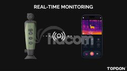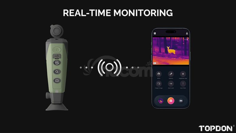 Model TS004 umožňuje bezdrôtové pripojenie k telefónu prostredníctvom aplikácie Toplnfrared na pozorovanie v reálnom čase. Vďaka nej môžete robiť snímky a nahrávať videá so zvukom aj bez pripojenia k internetu.