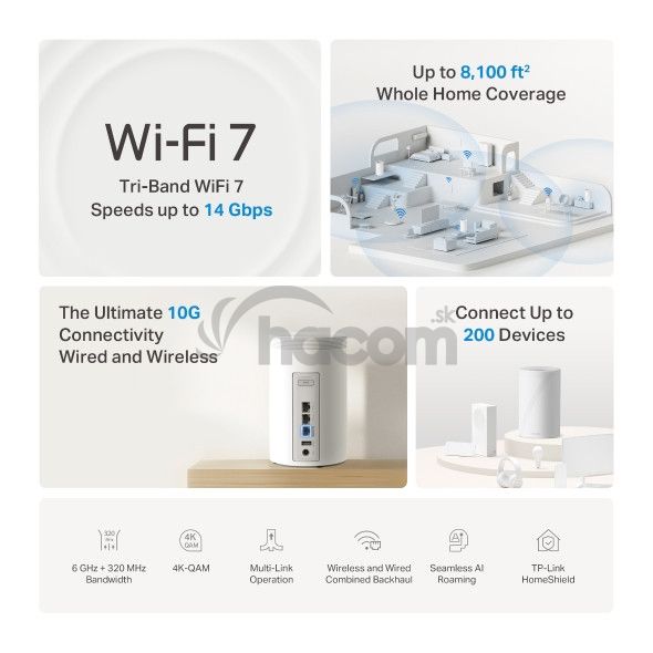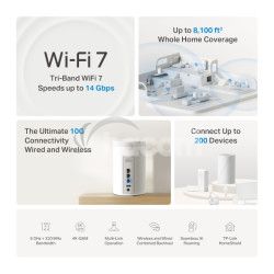 TP-Link Deco BE68 – 8streamový trojpásmový Wi-Fi 7 Mesh systémDeco BE68 poskytuje ultra vysokorýchlostný Wi-Fi 7 s celkovou rýchlosťou až 14 Gb/s