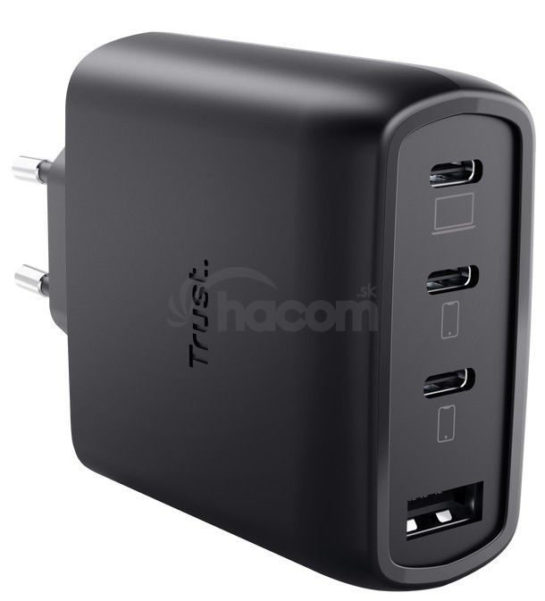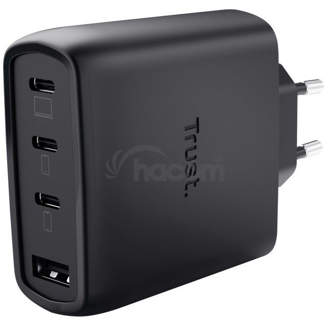 Trust Maxo 65W 4portová GaN USB nabíjačka čiernaPraktická 4portová 65W GaN USB nabíjačka na nabíjanie štyroch zariadení naraz