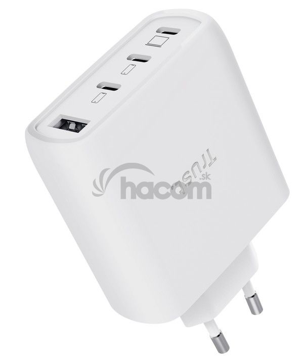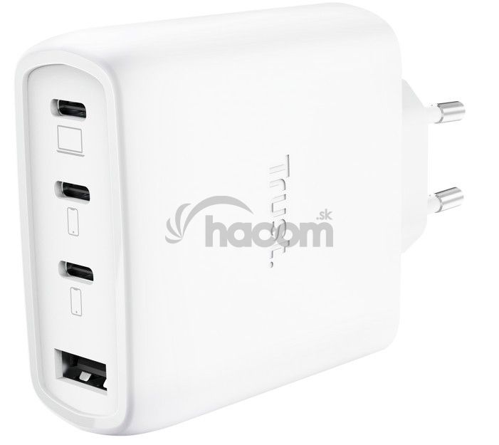Trust Maxo 65W 4portová GaN USB nabíjačka bielaPraktická 4portová 65W GaN USB nabíjačka na nabíjanie štyroch zariadení naraz