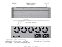 Systém ponúka dva 25G SFP28 porty s podporou agregácie liniek pre vysokorýchlostné pripojenie k sieti a redundanciu. Redundantný hot-swap napájacie zdroje s výkonom 550 W garantujú nepretržitý prevádzku aj pri výpadku jedného zdroja.