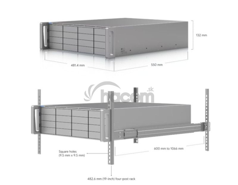 * inštalačná sada pre montáž (skrutky, úchyty, 2x posuvné lišty pre montáž do racku atď.)