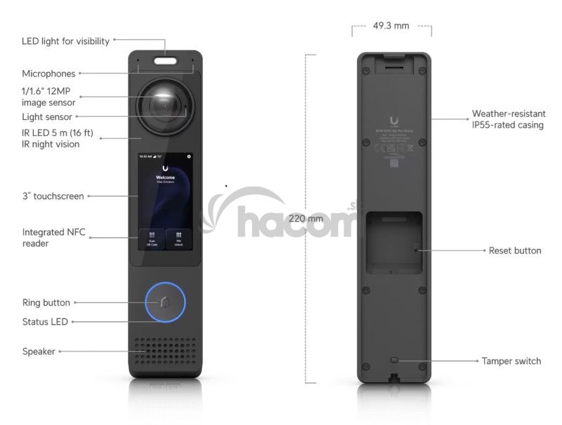 Ubiquiti UVC-G6-Pro-Entryinteligentný vstupný systém s natívnou integráciou UniFi Protect a UniFi Access s 12MP kamerou, obousmerným ozvučením a 3" dotykovým displejom
