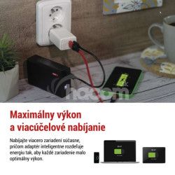 max. výstup 1× USB | A: 5 V/3 A – 9 V/2 A – 12 V/1,5 A (18 W); C: 5 V/3 A – 9 V/3 A – 12 V/3 A – 15 V/3 A – 20 V/2,25 A (45 W) |