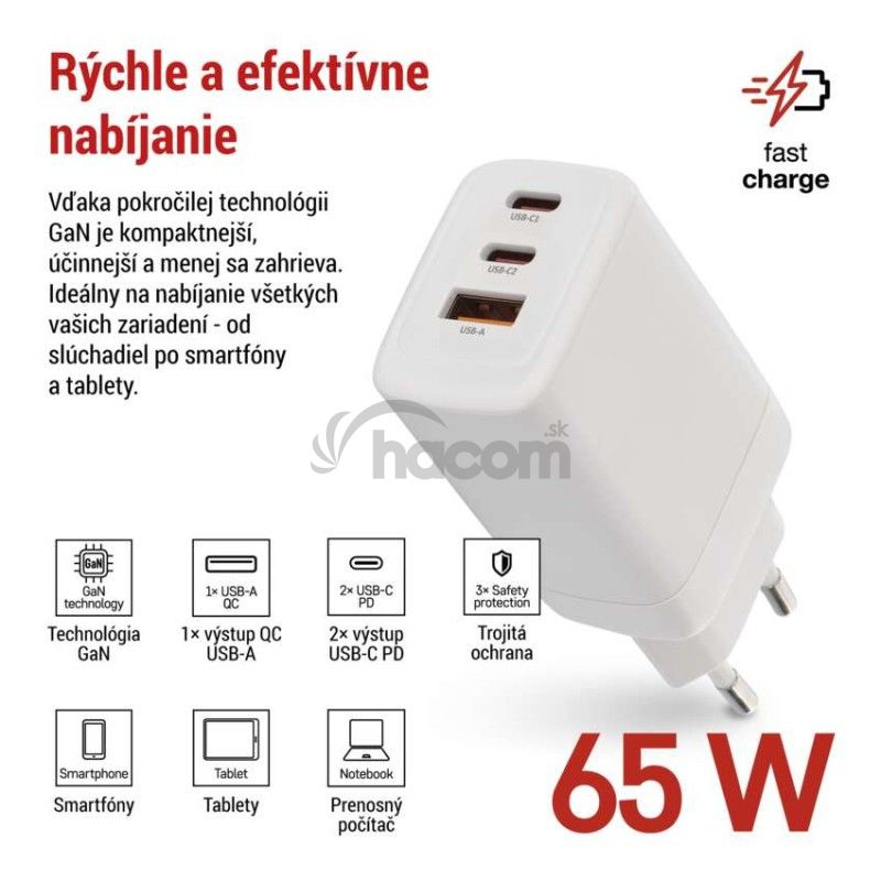 Univerzálny USB adaptér GaN do siete PD 65 W max. V05G65