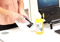 Vlhčené obrúsky určené na čistenie obrazoviek, sklenených plôch skenerov, počítačov PDA, filtre monitorov, monitory CRC, TFT/LCD, notebookov aj smartfónu. Dóza obsahuje 100 ks vlhčených biologicky rozložiteľných utierok na čistenie obrazoviek.Nezanechávajú šmuhy, majú antistatické vlastnosti, neobsahujú alkohol a sú dermatologicky testované. Šetrné k životnému prostrediu.