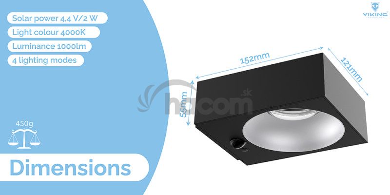 Svietivosť 1000 lm • solárne napájanie • farba svetla 4000K (denná biela) • 4 režimy osvetlenia • doba osvetlenia za nevhodných podmienok viac ako 7 dní • odolnosť IP65 • kapacita batérie 3,7V/7,4 Wh • výkon solárneho panelu 4,4 V /2 WVonkajšie solárne LED svetlo s pohybovým senzorom Viking SR35