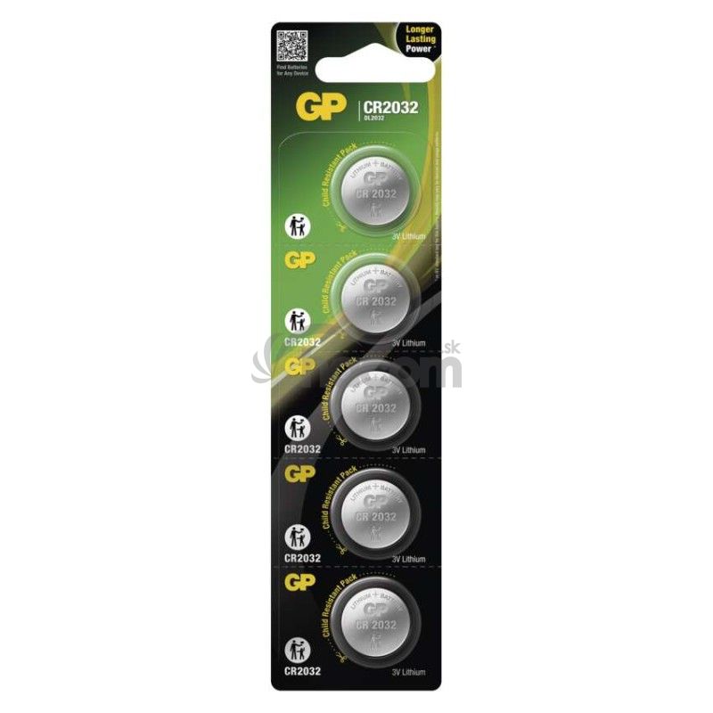 - Výhodné balenie lítiových gombíkových batérií GP CR2032 5ks B1532