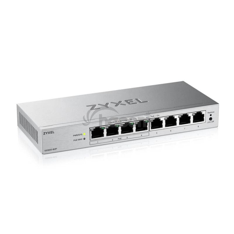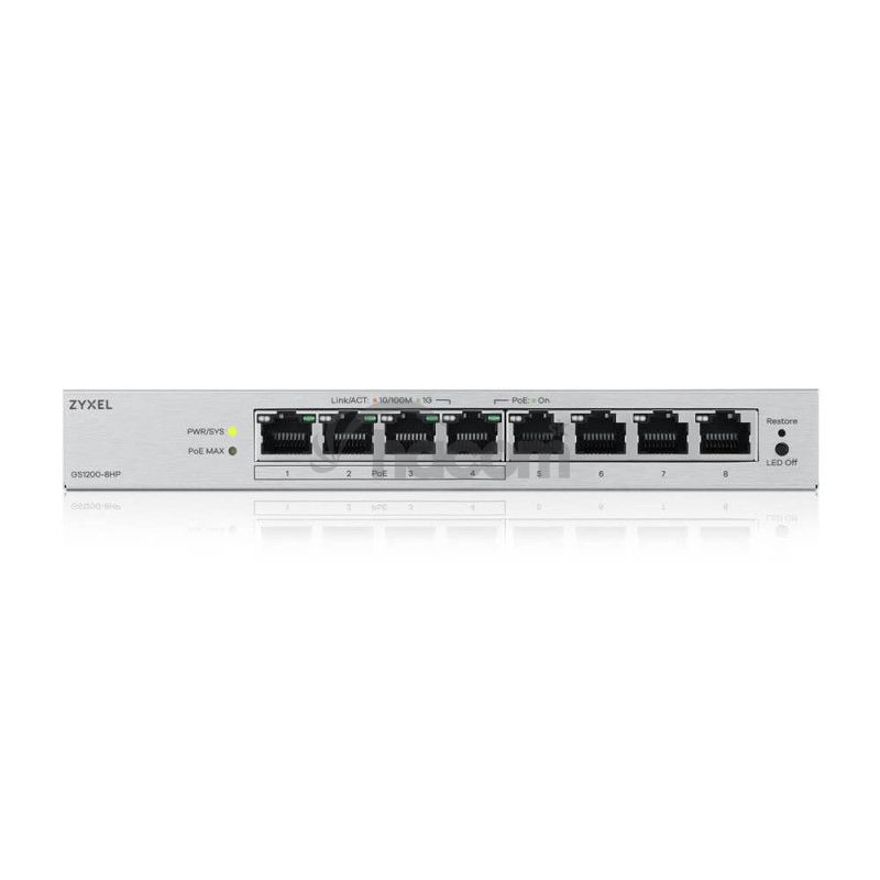 - Zyxel GS1200-8HP v3, 8 Port Gigabit PoE+ webmanaged Desktop Switch, 4x PoE, 68 Watt GS1200-8HPV3-EU0101F